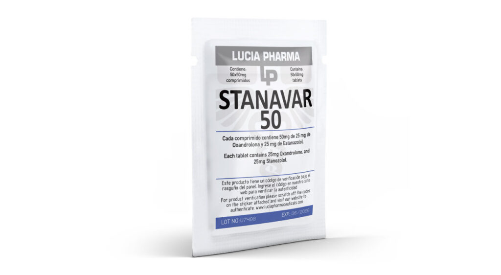 Cada comprimido contiene 50mg de 25 mg de Oxandrolona y 25 mg de Estanazolol